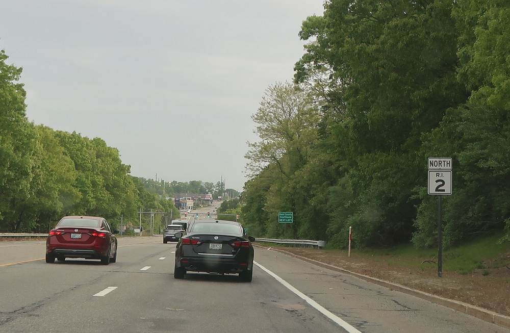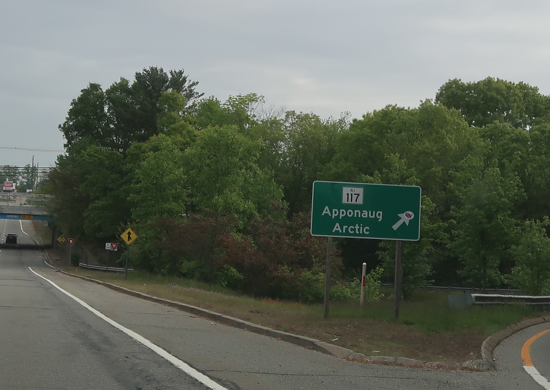 Shortly thereafter, we’ll approach an off-ramp to RI 117 without advance notice. Exit for RI 117.