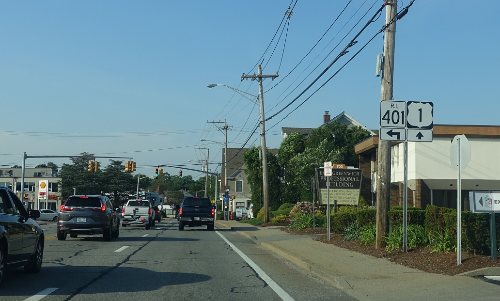 At 1st Avenue, turn left for RI 401 west. Stay straight to stay on US 1 north.