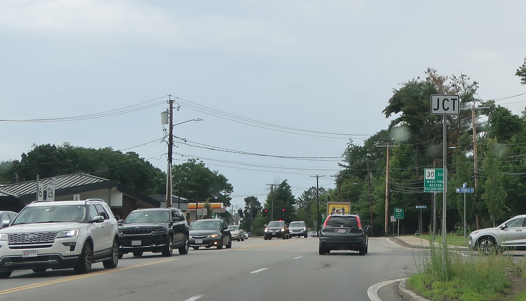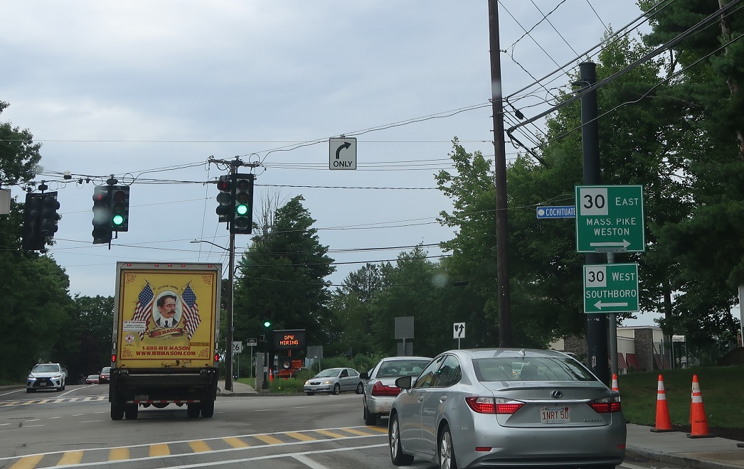 Turn left for 30 west to Southborough and right for 30 east to Weston and the Pike.