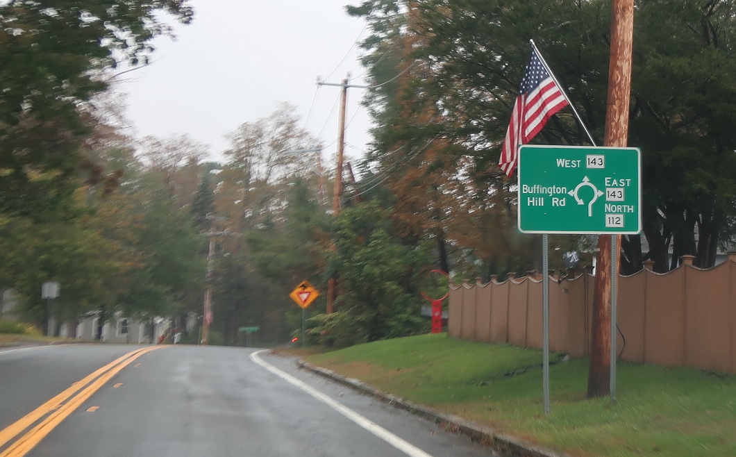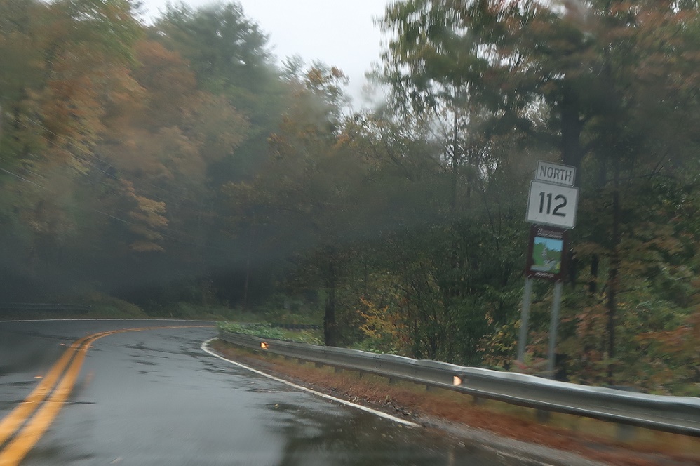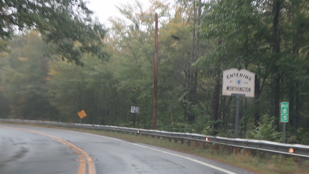 A couple miles later, in Worthington center, we’ll approach Route 143 in a rotary. Turn right for 143 east/112 north, which run concurrent for a mile. Stay straight for 143 west.