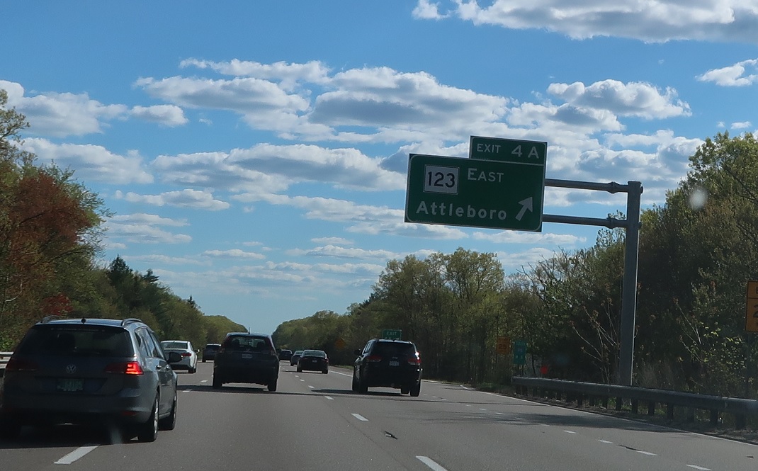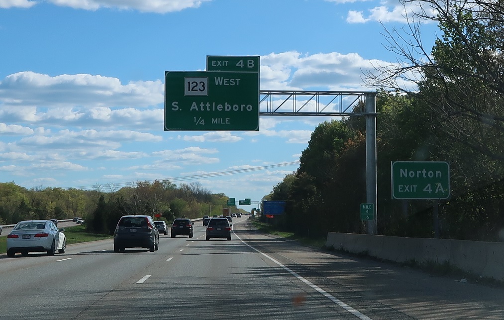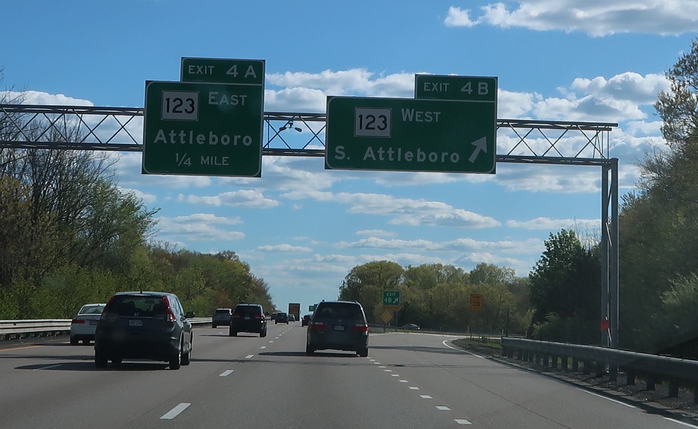 In a quarter mile, exit for 123 west to the village of South Attleborough.