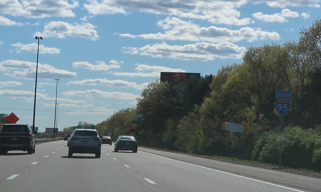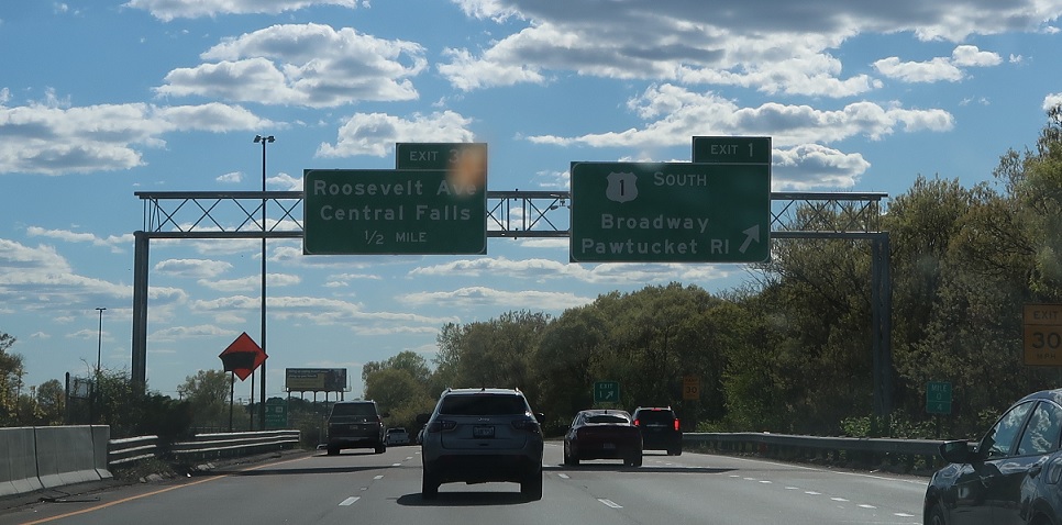 Soon thereafter, exit for US 1 south. There is no access to US 1 north from I-95, but there is a ramp from US 1 north to I-95 north. We’re half a mile from the first Rhode Island exit.