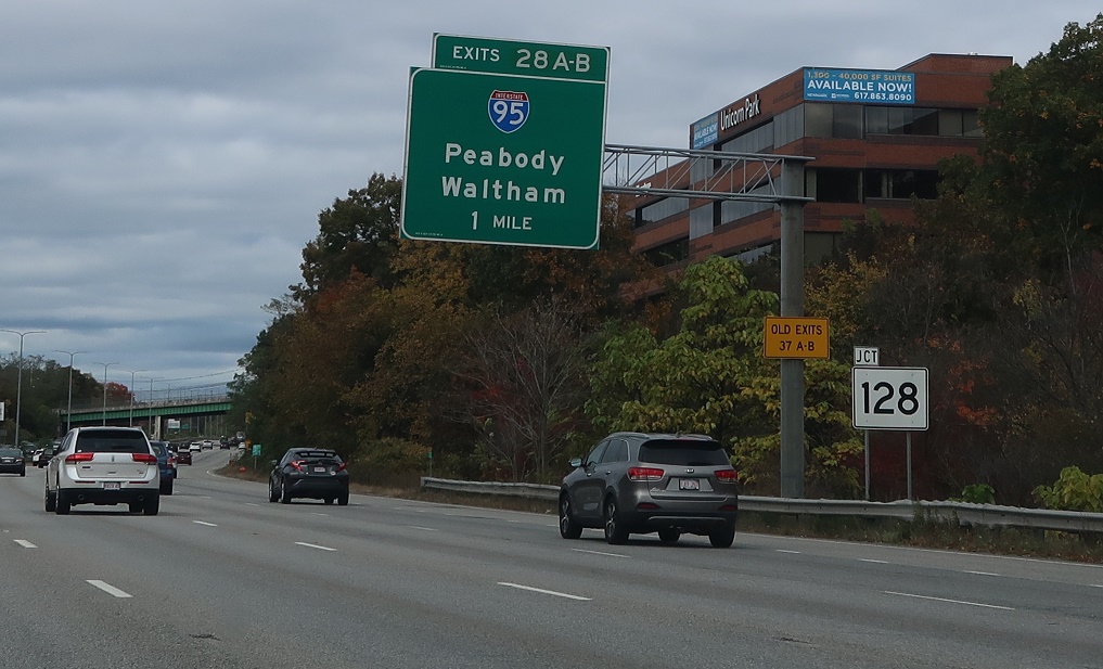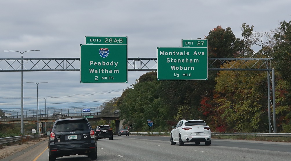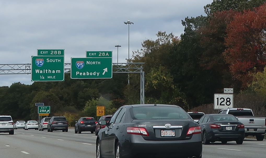 Reassurance shield after Park Street, which has on-ramps to I-95 to supplement the off-ramps to Route 28.