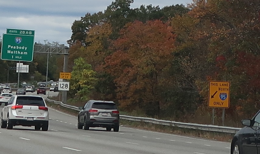 After Montvale Avenue, we’re advised that the right most lane is only for I-95 north.