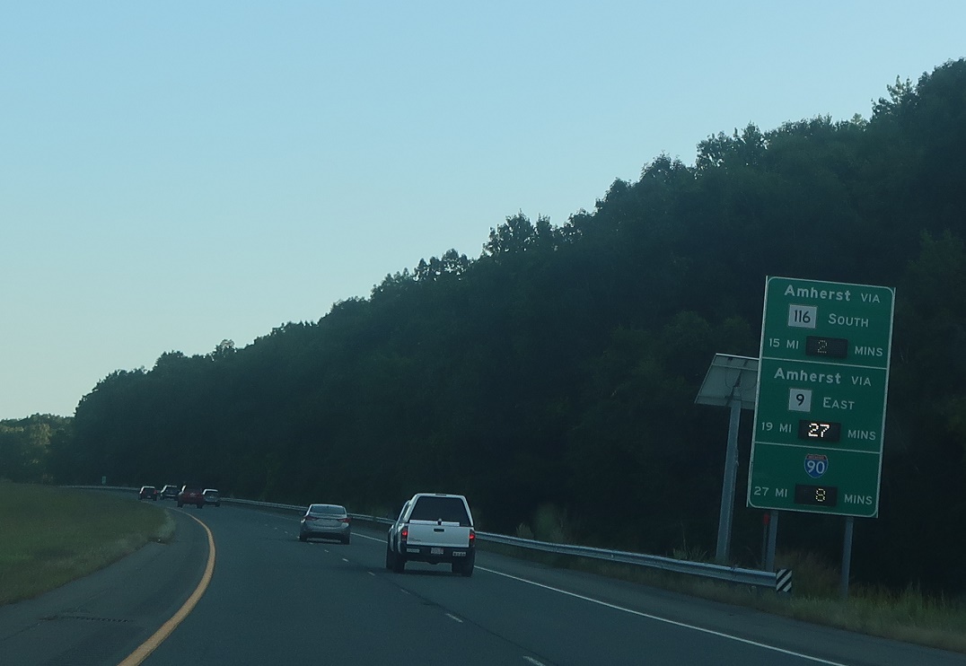 15 miles to Amherst via Route 116, 19 miles via Route 9, and 27 miles to the Mass. Pike.