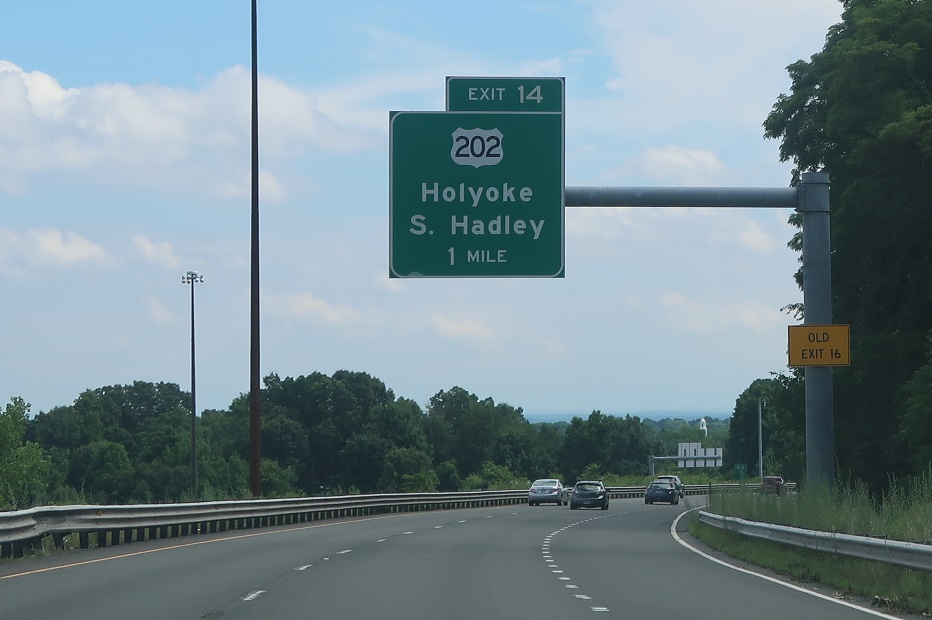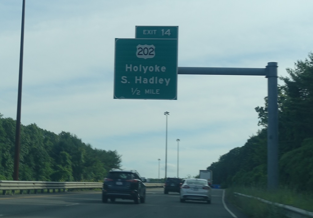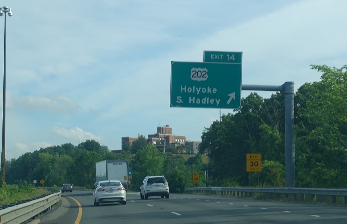 Exit for US 202, which heads north to downtown Holyoke and south to South Hadley.