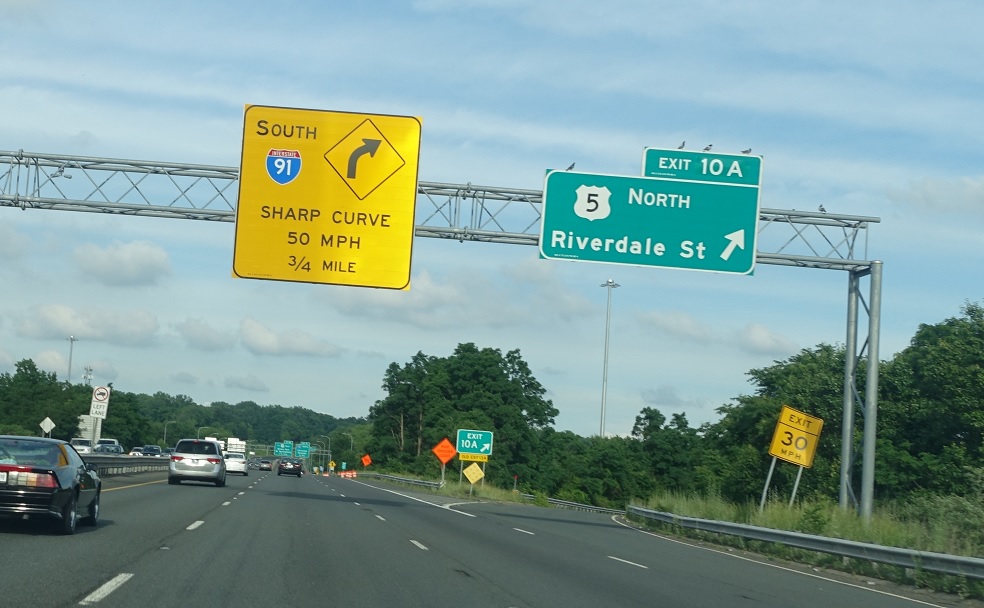 Exit for US 5 south. An unusual 1/3 of a mile to US 5 north.