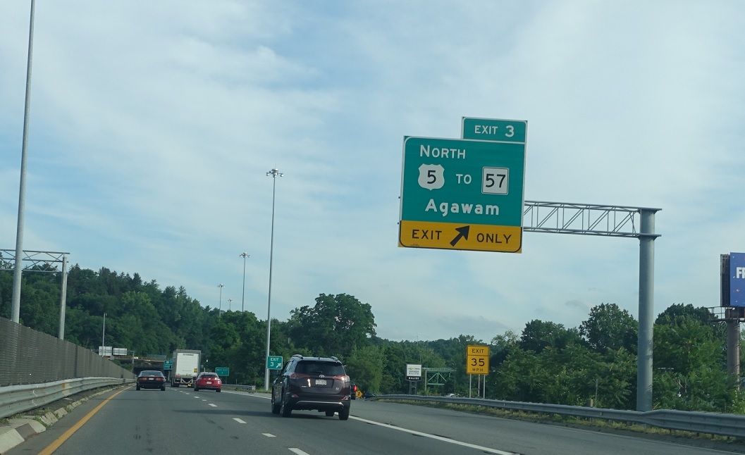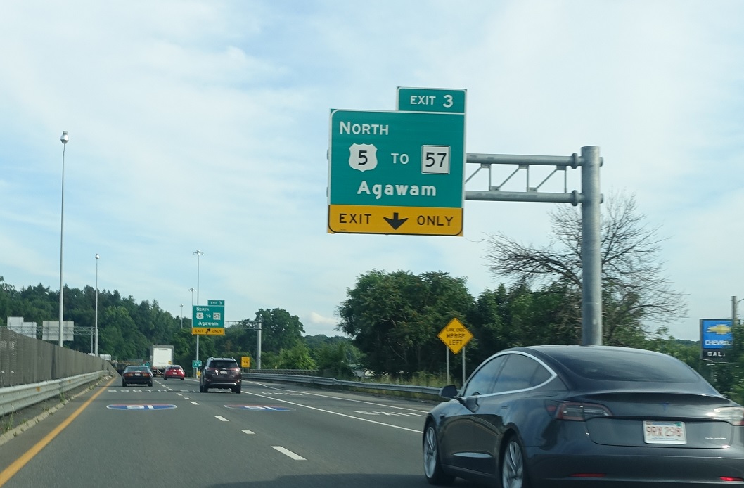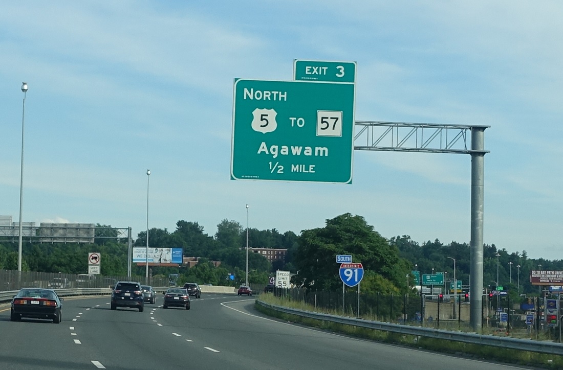 Follow 5 north to Route 57. 5 south joins I-91 north for a very short bit.