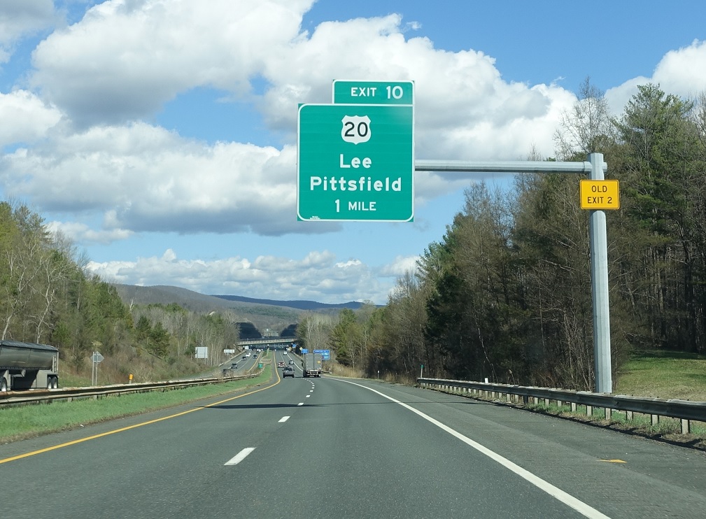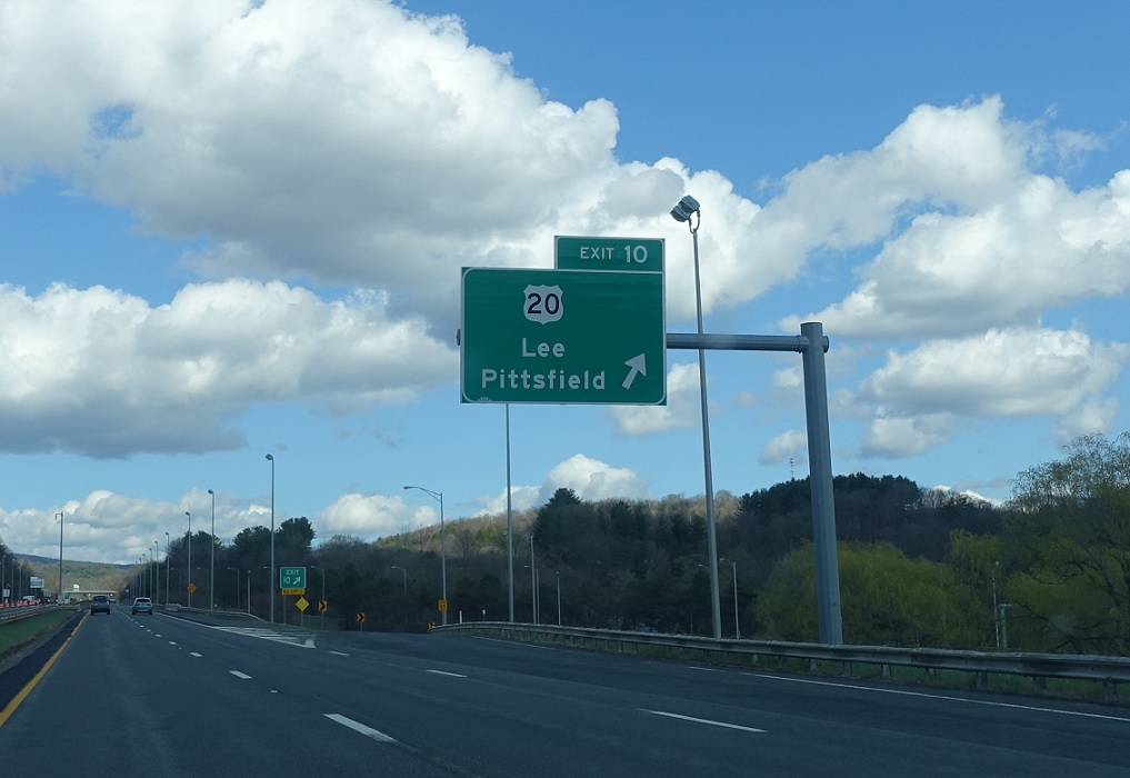 Exit for US 20, which continues to parallel I-90 in Massachusetts. Route 102’s eastern terminus is also just past this exit.