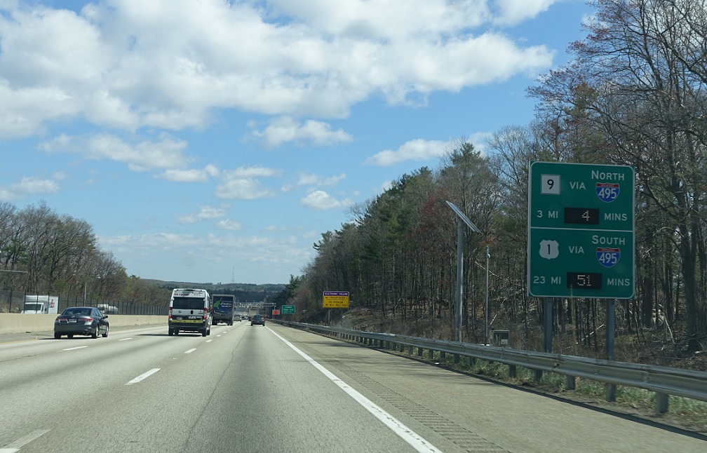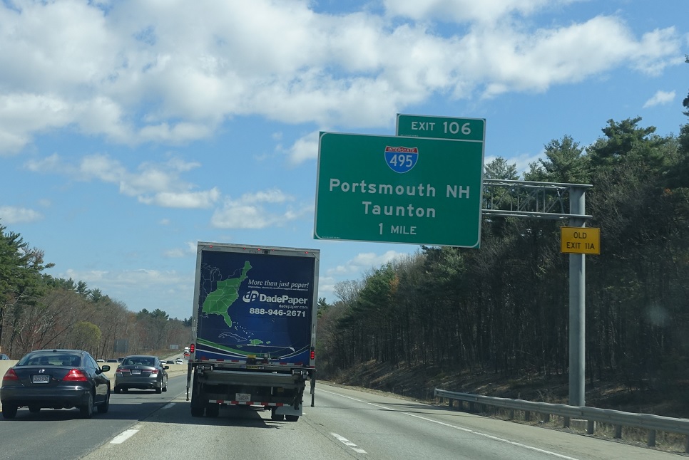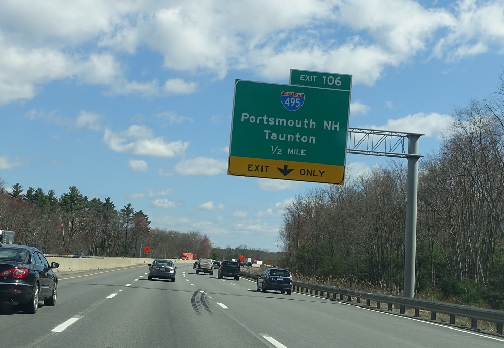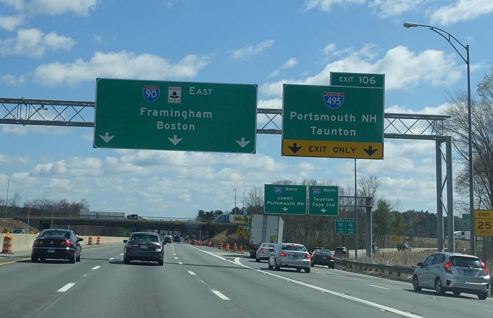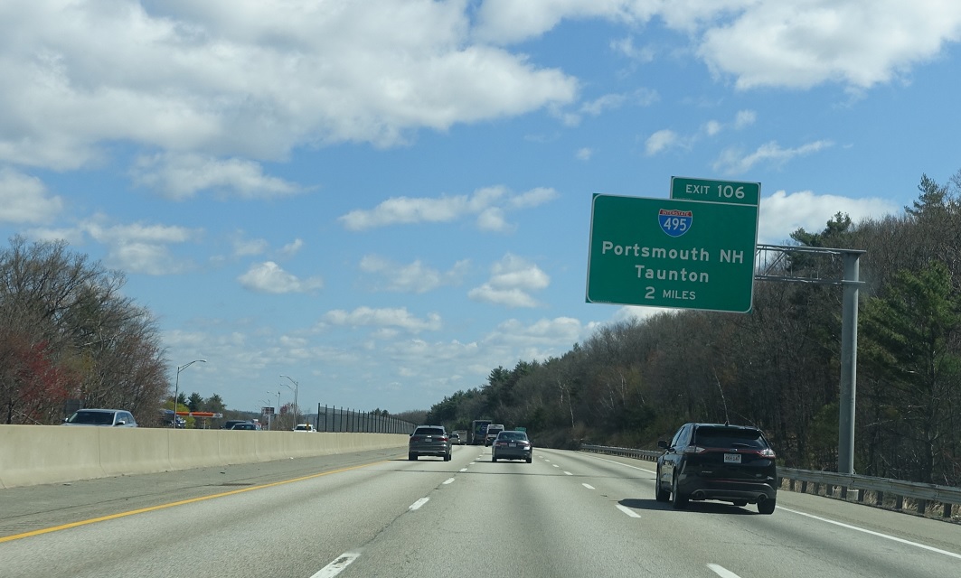 Exit for I-495, which heads north to Portsmouth, N.H. and south to Taunton.