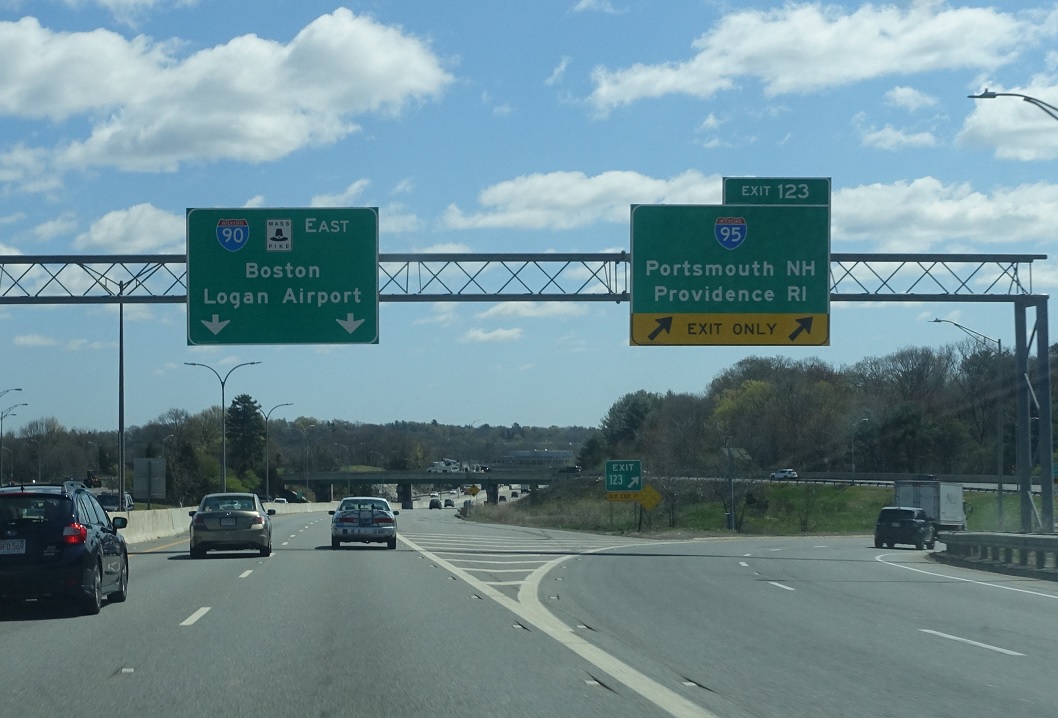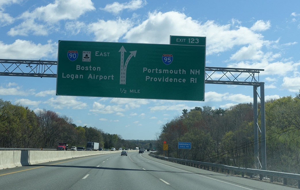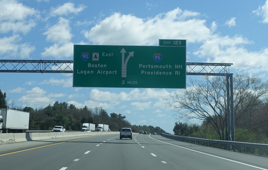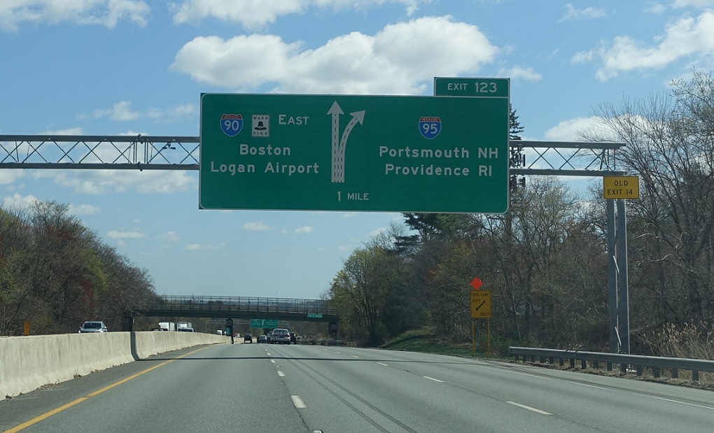 I-95 heads north to Portsmouth, N.H. and south to Providence, R.I. Stay on the Pike for Logan Airport.