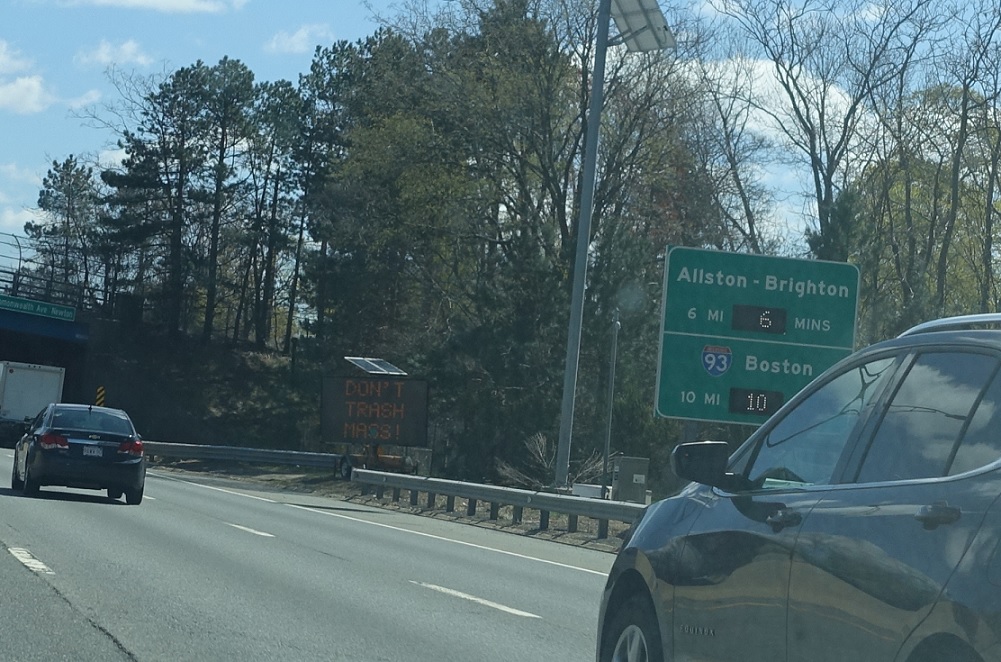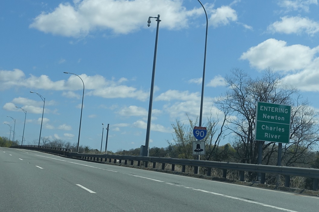 A mile later, we’re ten miles from I-93. Just ahead, Route 16 traffic has a chance to merge onto the Pike, but there is no access from I-90 east to Route 16.