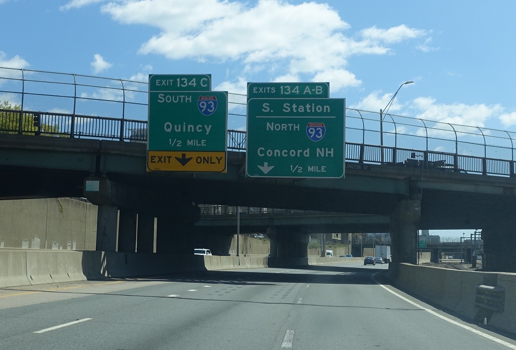Keep left for I-93 south to Quincy. Stay in the middle lane for 93 north to Concord, N.H.