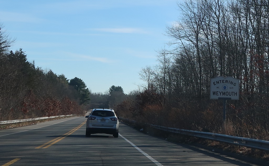 No reassurance shield after Route 37, and then a couple miles later we’ll enter Weymouth.