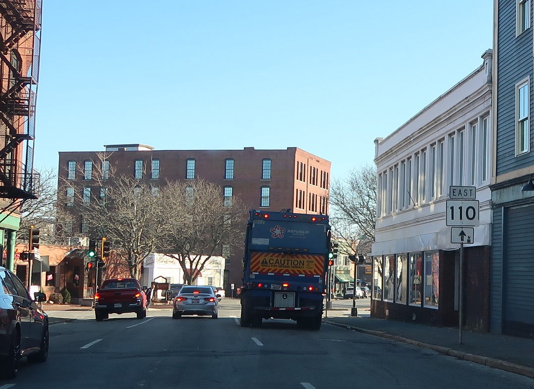 After the 3A split, we’ll enter the heart of downtown Lowell. Stay straight to stay on 110 east.