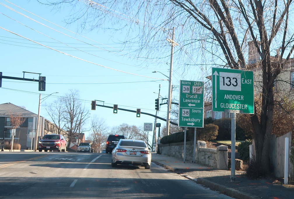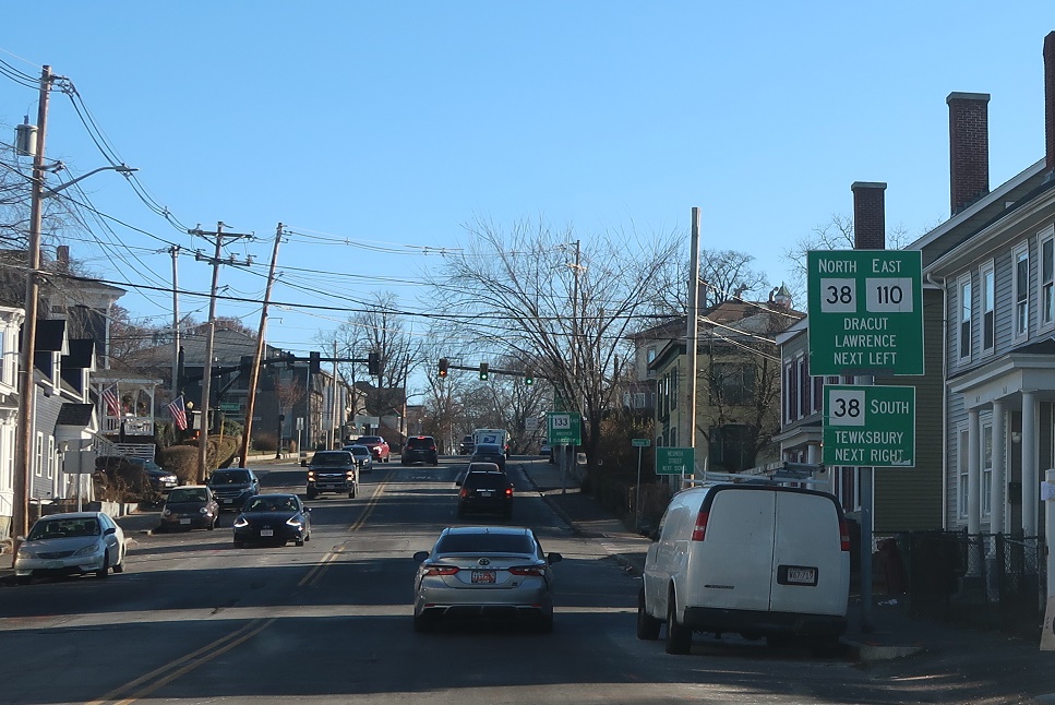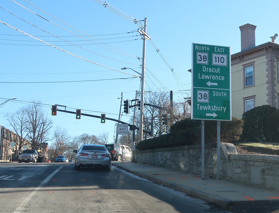 Turn left for 38 north/110 east to Lawrence. Turn right for 38 south to Tewksbury.