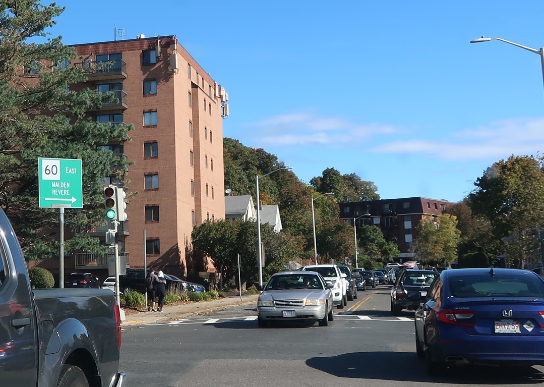 Several blocks after I-93, we’ll approach Route 28 without signage. Stay straight to stay on 60 east. Turn right for 28 south and left for 28 north.