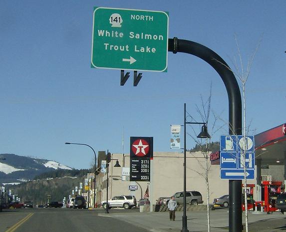 No reassurance shield or junction signage for SR 141, but a nice BGS at the turn. 141 heads north to Trout Lake