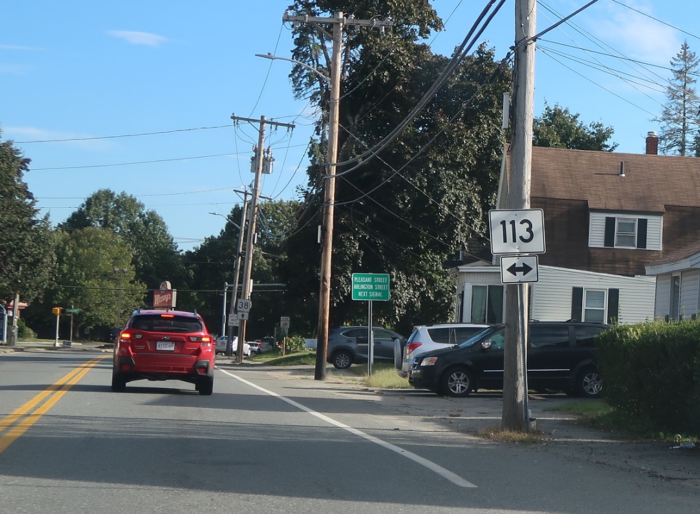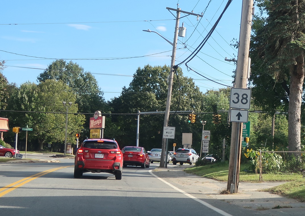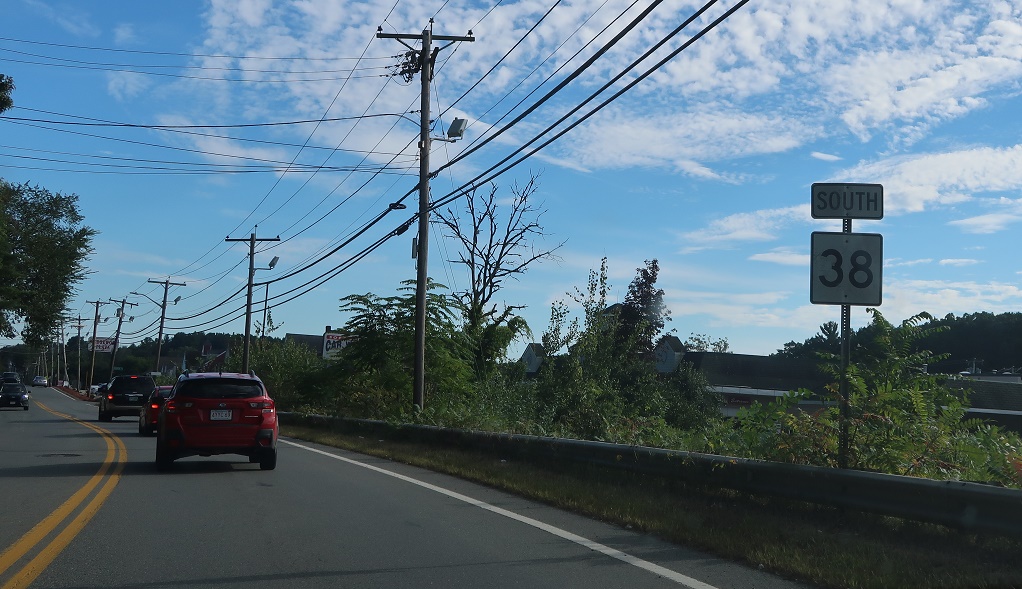 Welcome to Massachusetts! Route 38 continues into the Bay State down to Boston.