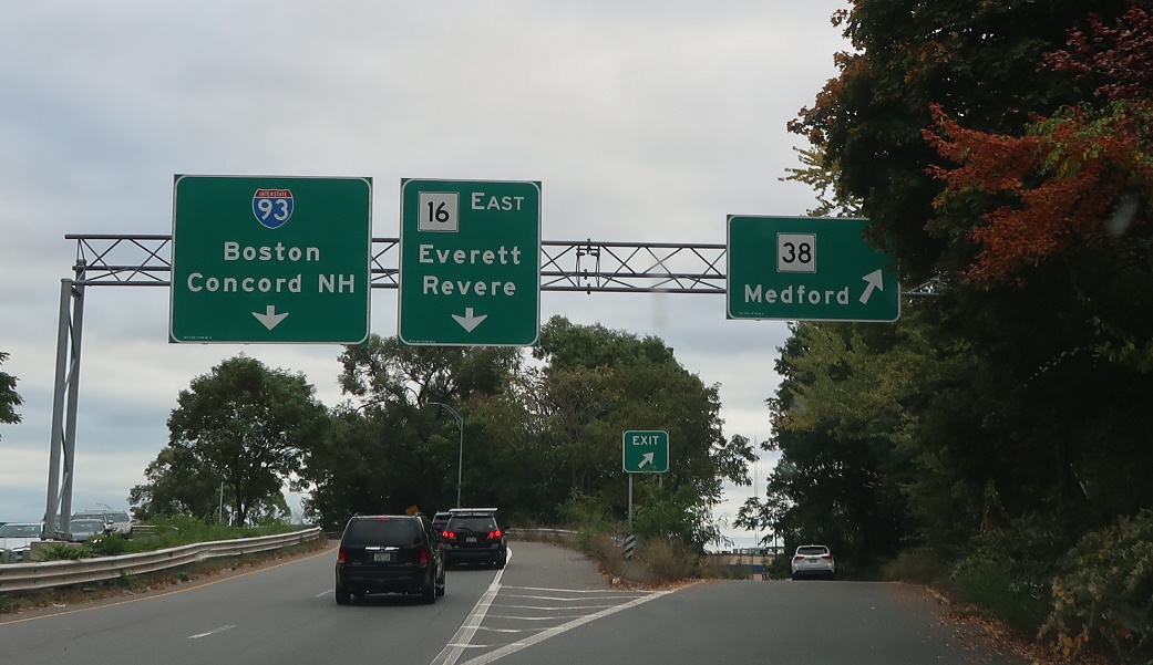 Shortly thereafter, keep left for Route 16 to I-93. Exit right to stay on Route 38.