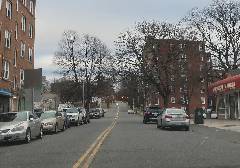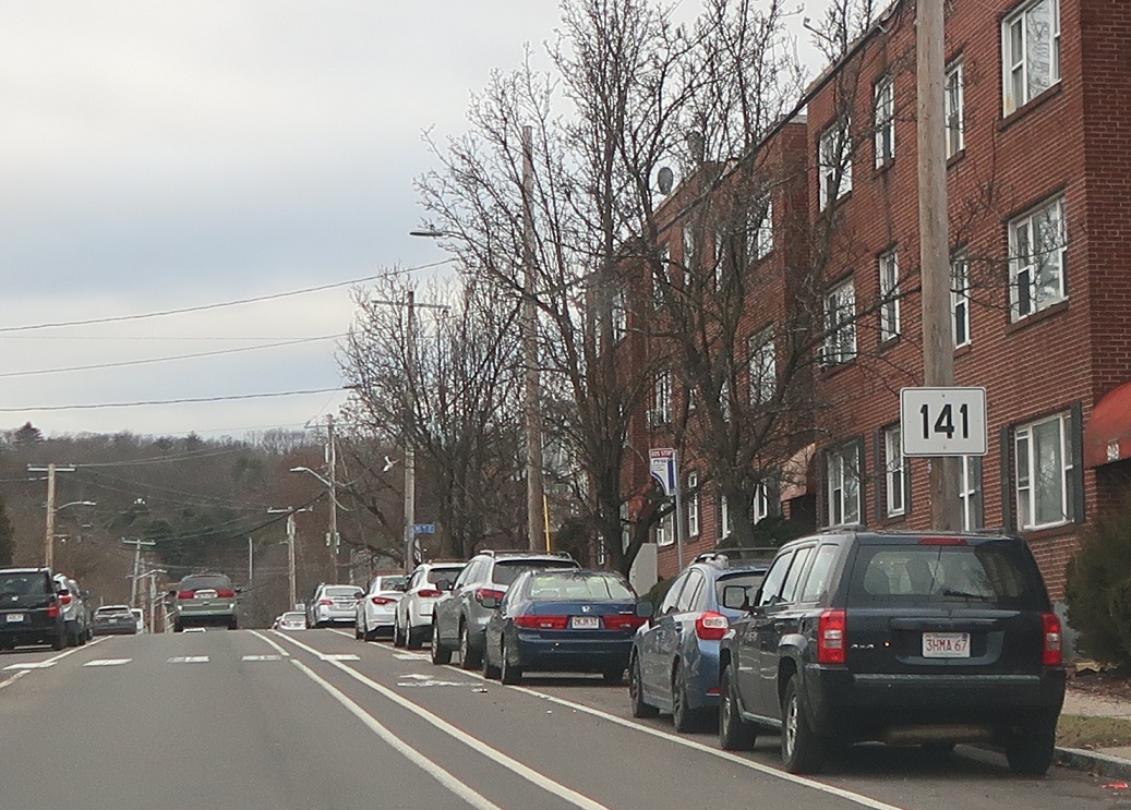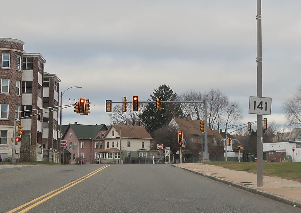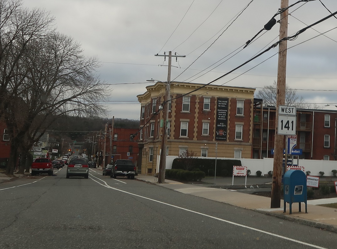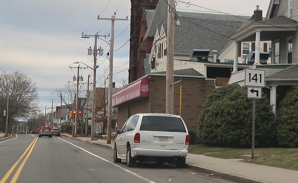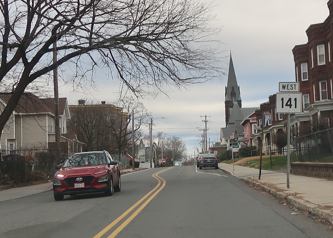 After the 116 turnoff, there’s no reassurance shields on Appleton Street for several blocks. At Beech St, Route 141 intersects U.S. 202 north, but only 202 north – we’ll cross 202 south in several blocks with U.S. 5.