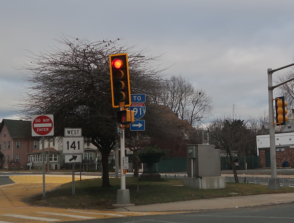 As we approach U.S. 5 and U.S. 202 south, we’re told to stay straight on 141 for I-91. At the light in the background, turn left for 5/202 south and right for 5 north.