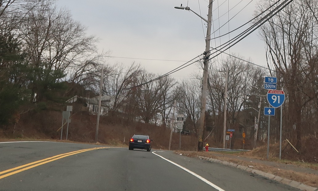 Exit left for the first ramp to I-91 south. Keep right for 141 west.