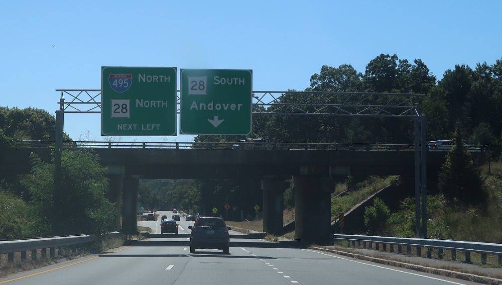 Keep right for 28 south. The I-495 north ramp provides a connection back to 28 north.