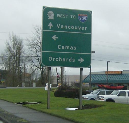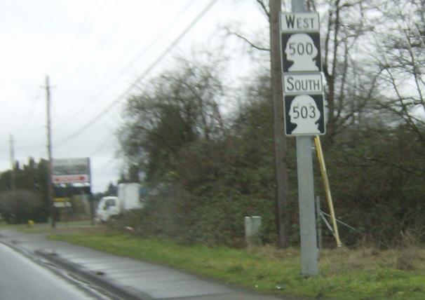 Continue straight for SR 500 West. SR 503 will end at this intersection. Before SR 500 was moved to this alignment you would turn left here for SR 500 east to Camas
