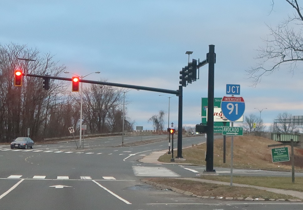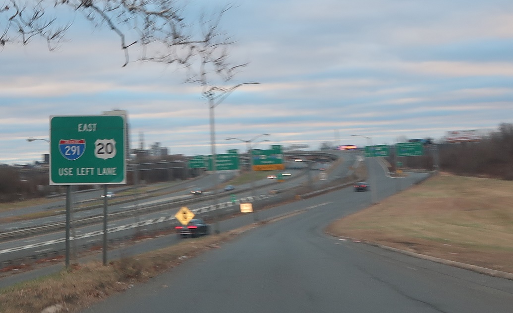 As we approach I-91, stay straight to loop onto I-91 north. Keep right to stay on 20 east to I-91 south and I-291.
