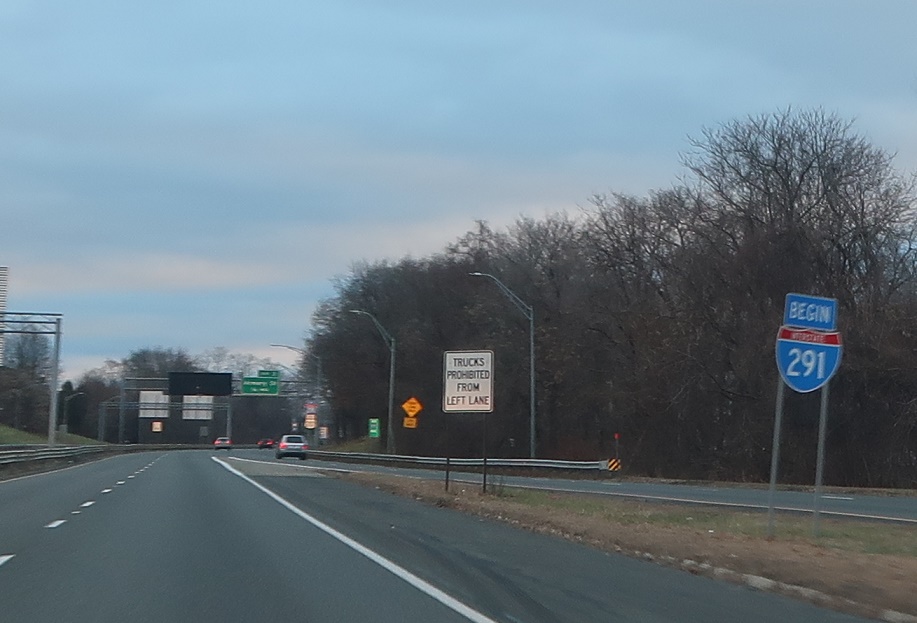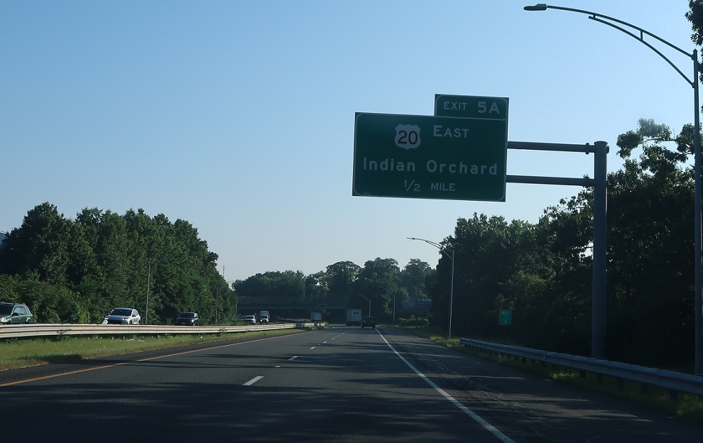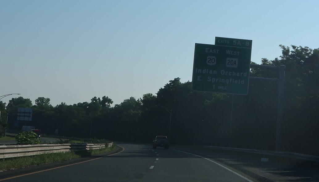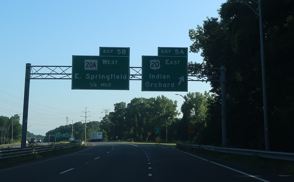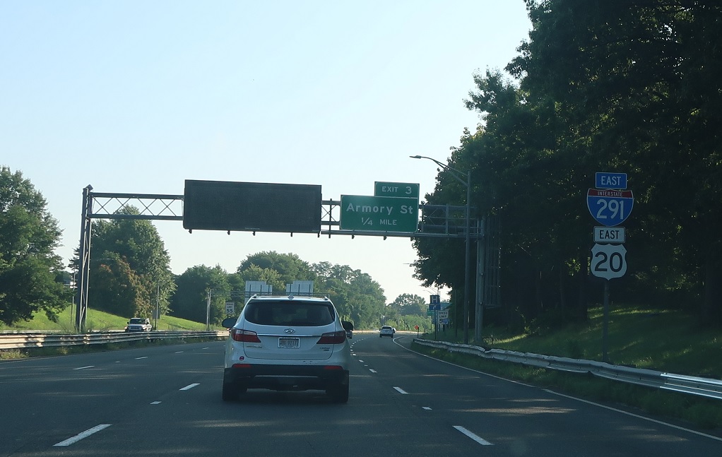 In a mile, U.S. 20 will split from I-291 and Route 20A will rejoin.