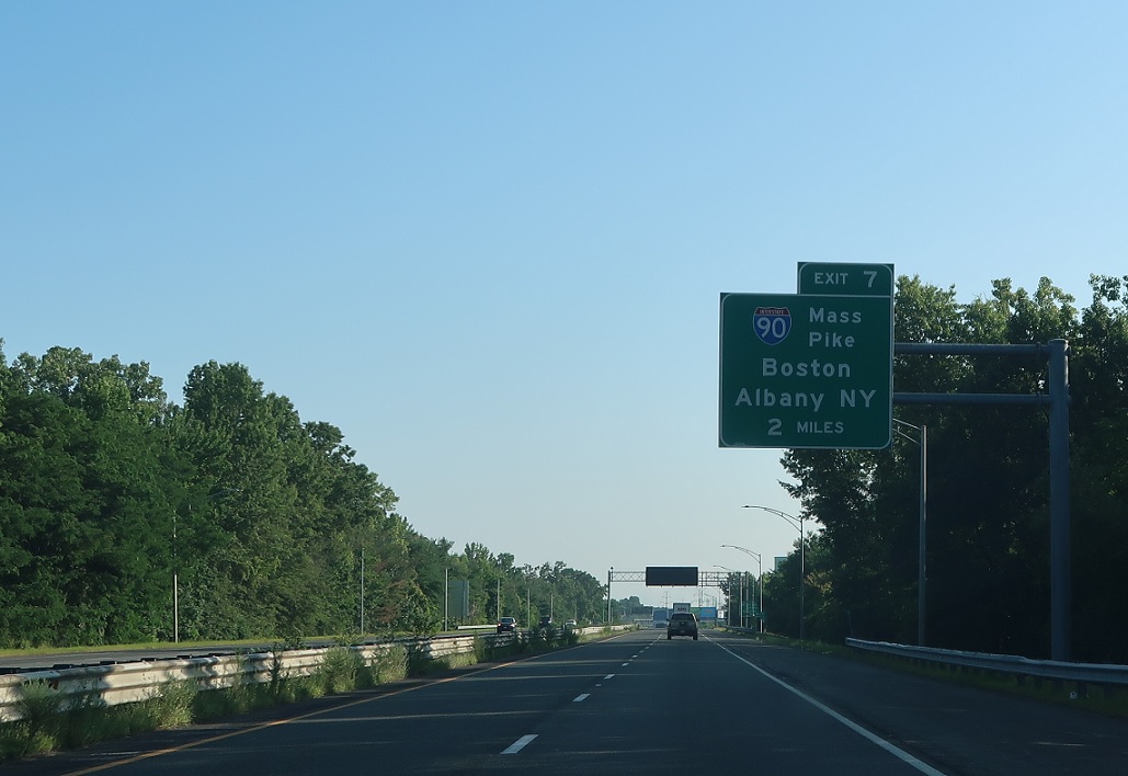 Exit ahead for 20 east, which continues to provide a toll-free alternative to the Pike.