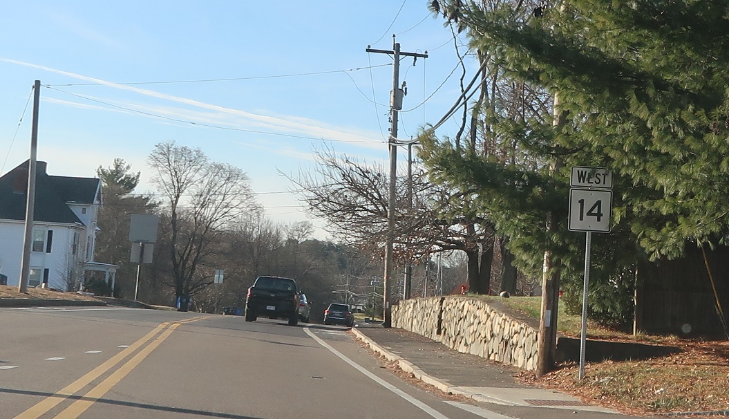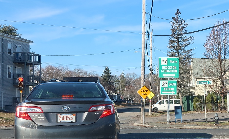 Turn right for 27 south back to where we bumped into 27 before. Turn left for 27 north into Brockton center. Route 14 ends.