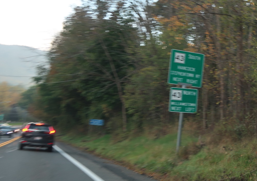 Follow 43 north back to Williamstown. 43 south heads to New York.