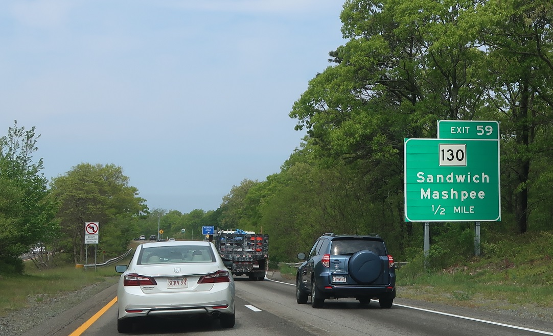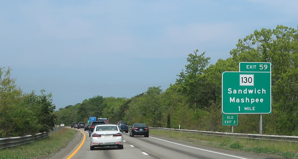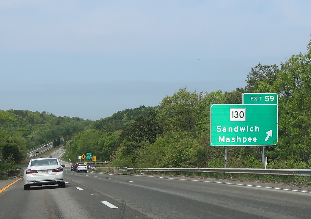 Exit for Route 130, which heads north to Sandwich center and south to Mashpee.