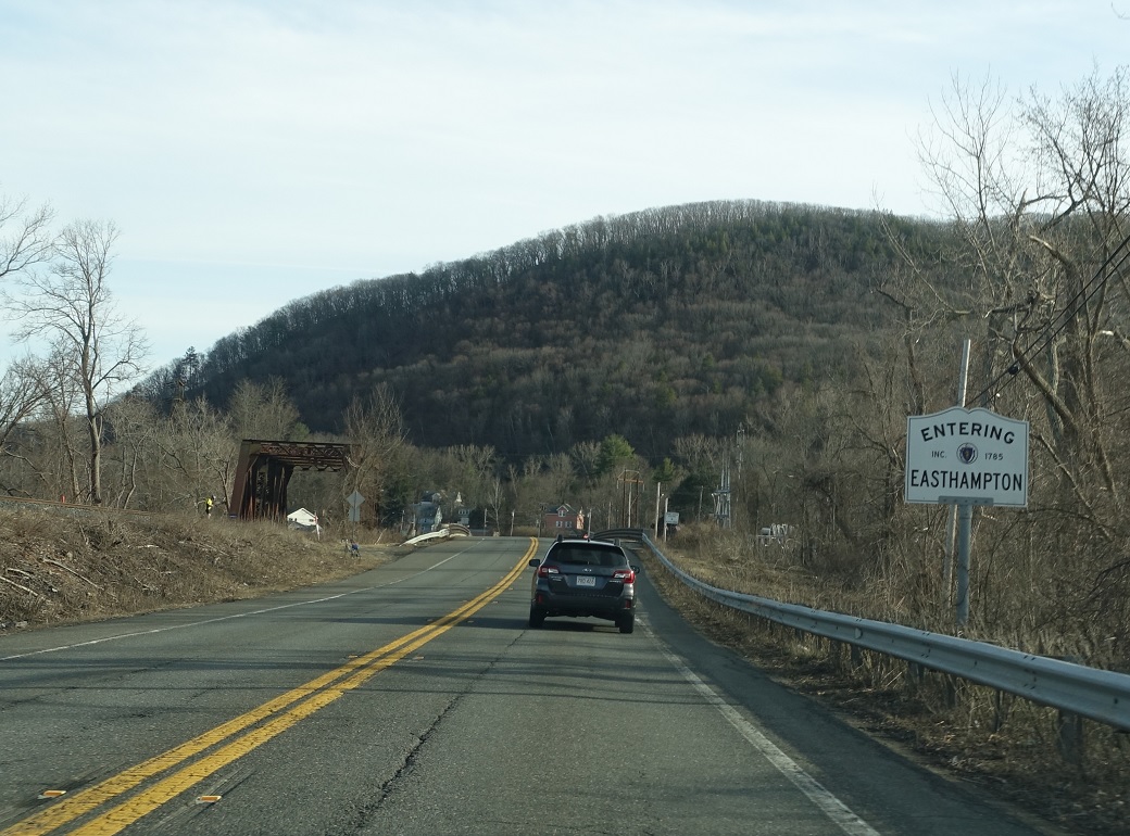 A couple blocks after 202 south joins 5 south, the two routes approach Route 141. Turn right here for 141 west to Easthampton. 141 east is on its own one way grid and we’ll bump into that in another block.