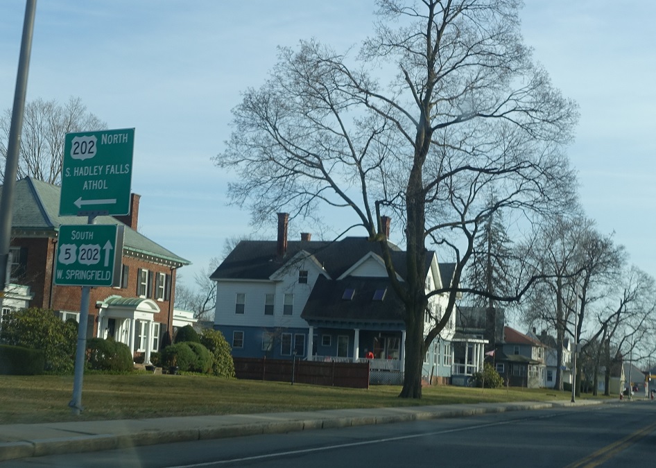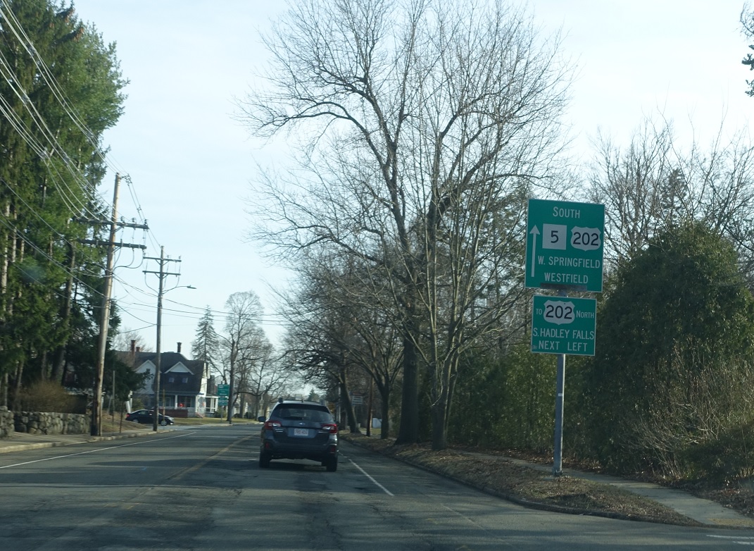 Turn left to connect to 202 north. 202 south joins 5 south for several blocks. This isn’t actually 202 north, though – which takes a totally different path through Holyoke.