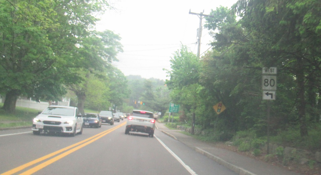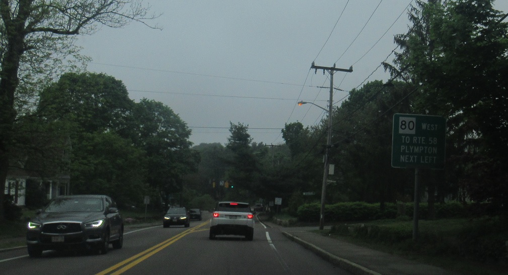 Turn left for Route 80 west, which is a weird spur to nowhere in Plymouth. A local road connects 80 west to Route 58.