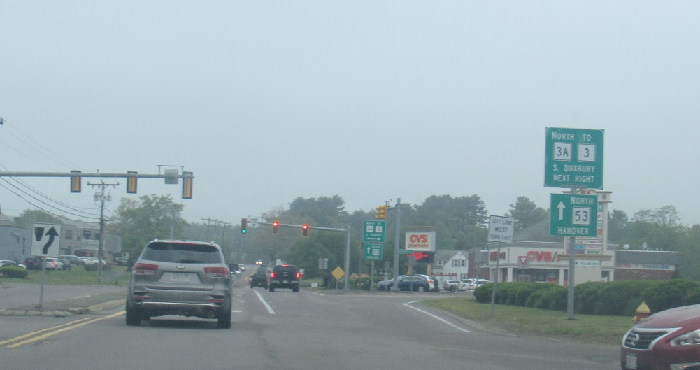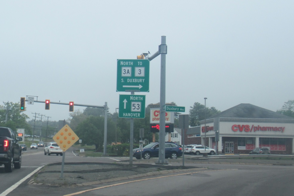 Turn right for 3A north to Route 3. Stay straight to stay on 53 north.