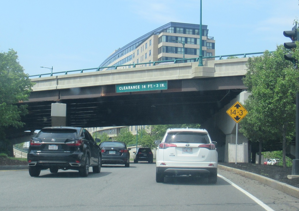 Button copy height sign as we pass under Quincy Shore Drive. We’re almost to I-93.