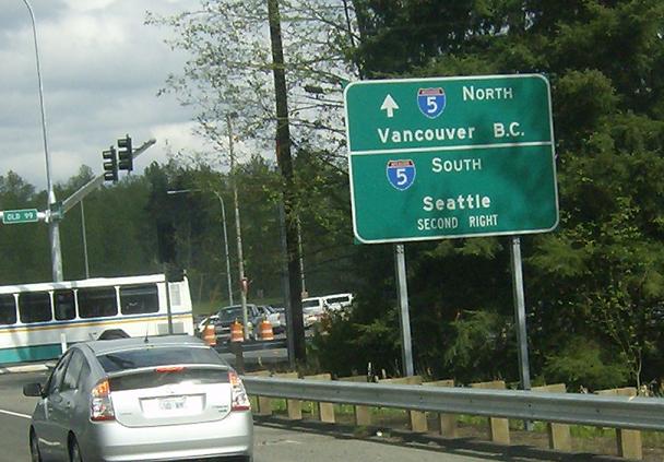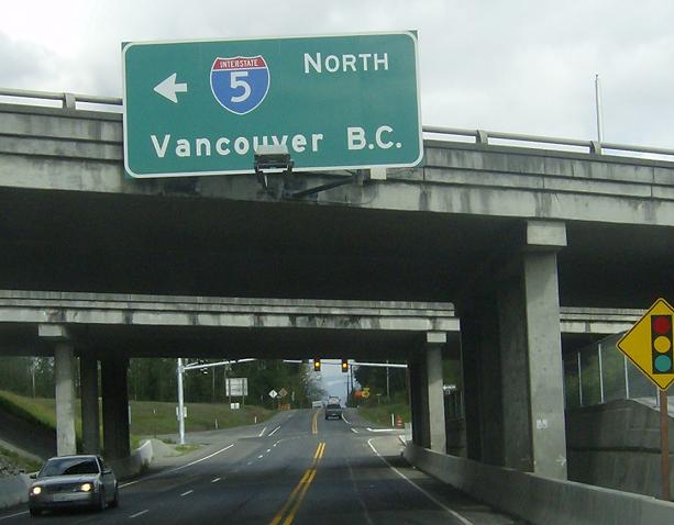 Turn right for I-5 south, but pass through the old US-99 intersection first