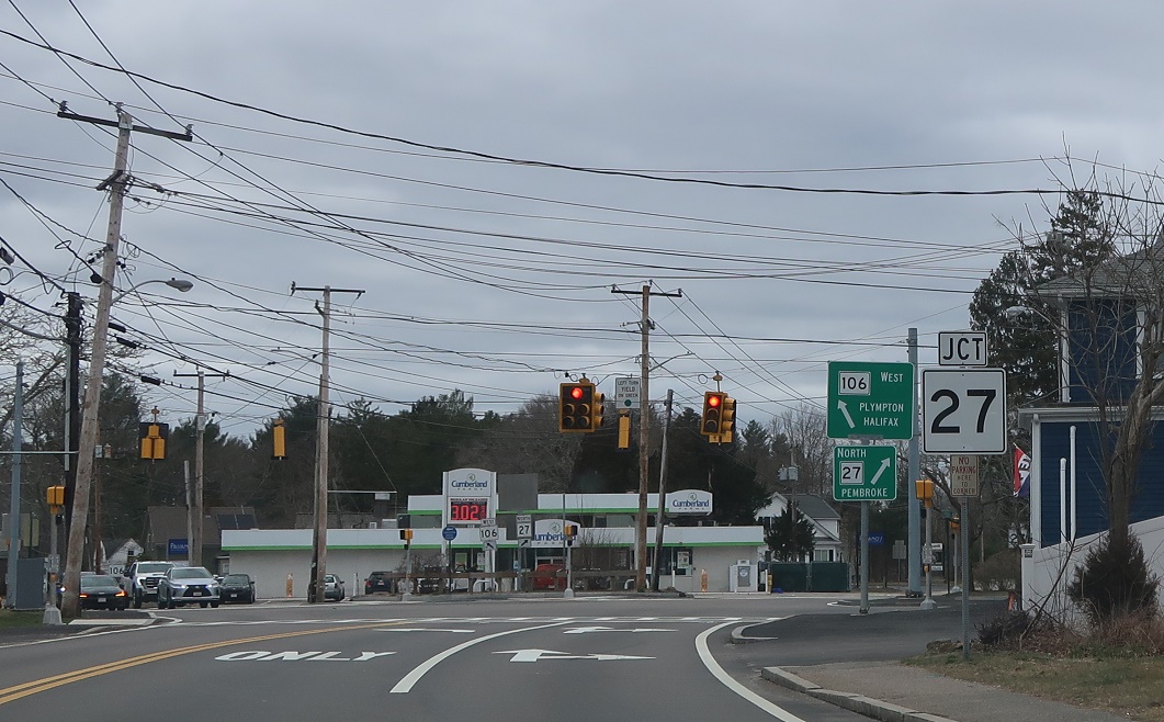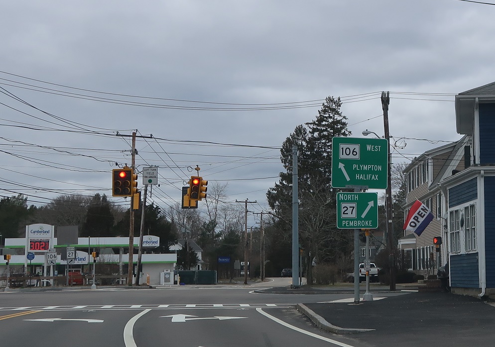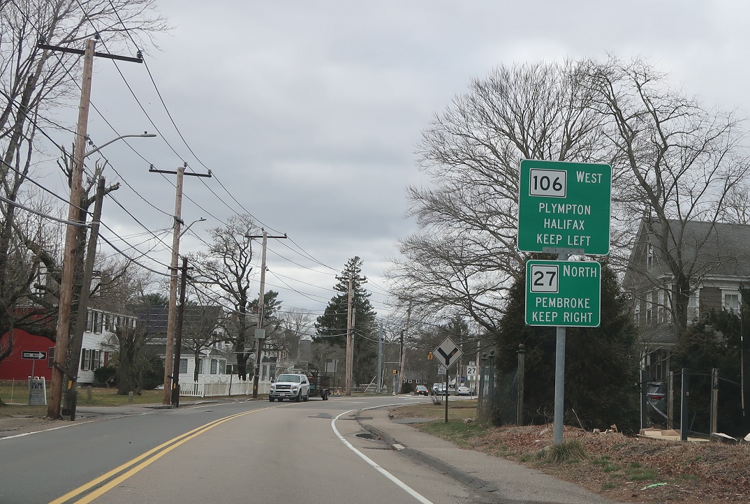 Keep right for 27 north to Pembroke. Keep left for 106 west to Plympton.
