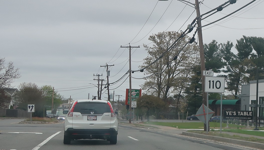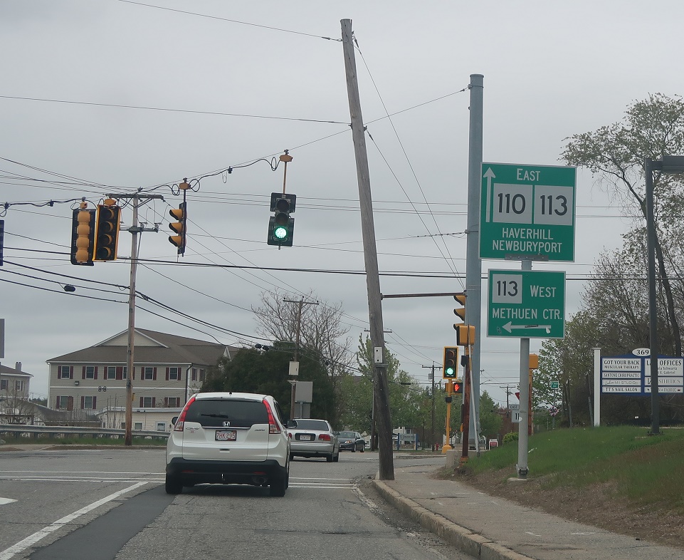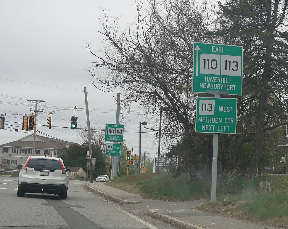 Stay straight for 110/113 east, which run concurrently to Haverhill. Turn left for 113 west to Methuen center.