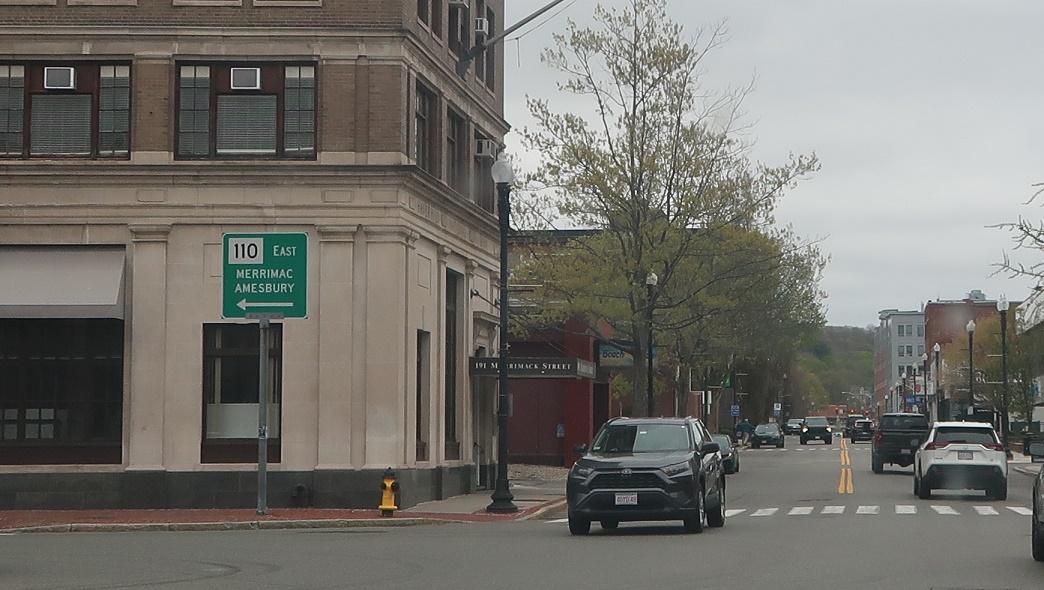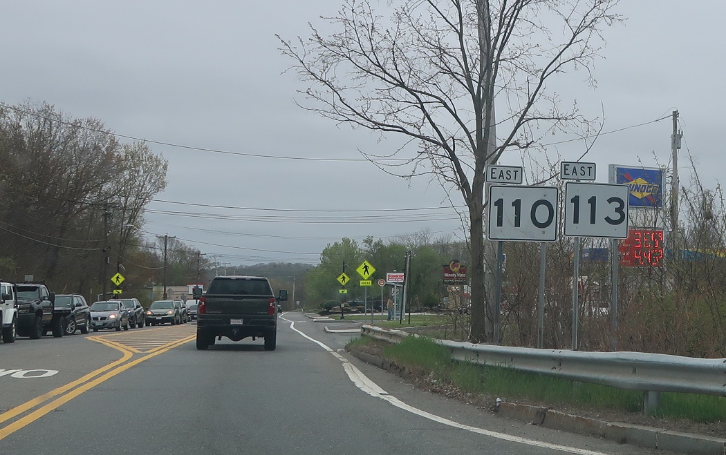 Several blocks later, Routes 113 and 110 will split. Turn right to stay on 110 east towards Merrimac. Stay straight to stay on 113 east.