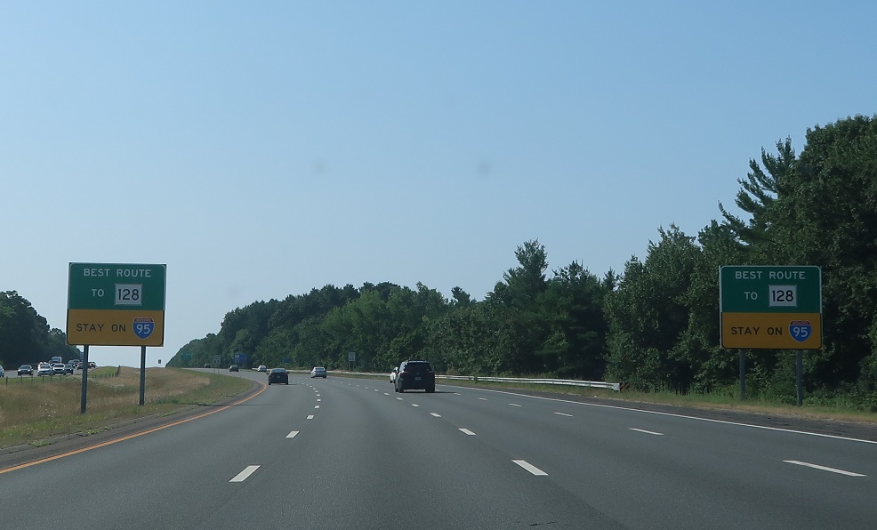 Traffic to Route 128 is advised to stay on I-95 and not duck off onto U.S. 1.