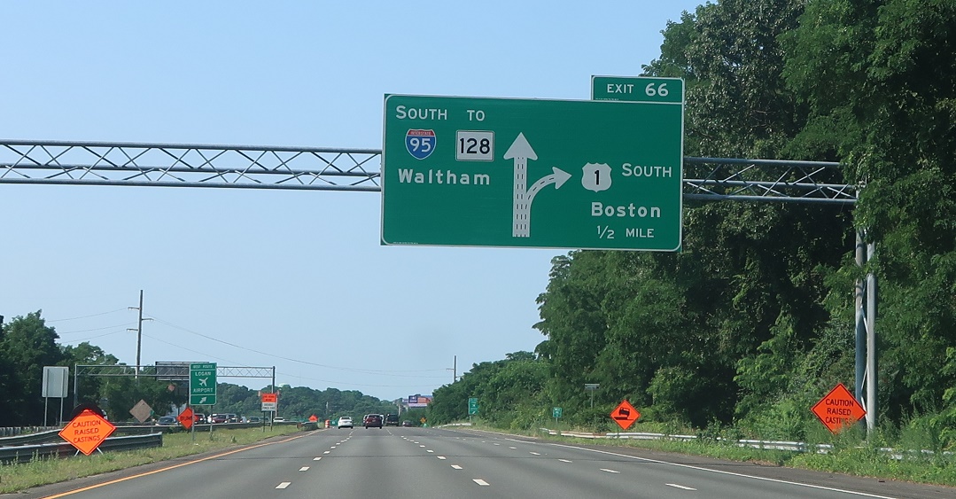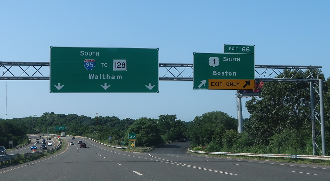 Exit for 1 south to Boston. Stay on I-95 south for Route 128.