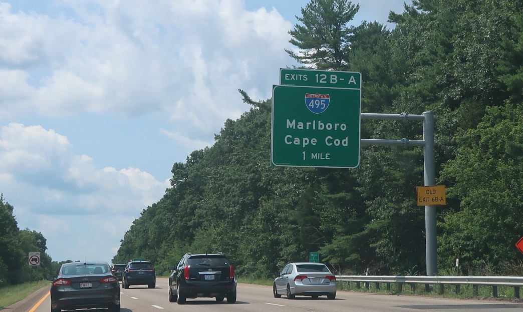 Exit for I-495 north to Marlborough. Exit in a quarter mile for I-495 south to Cape Cod.
