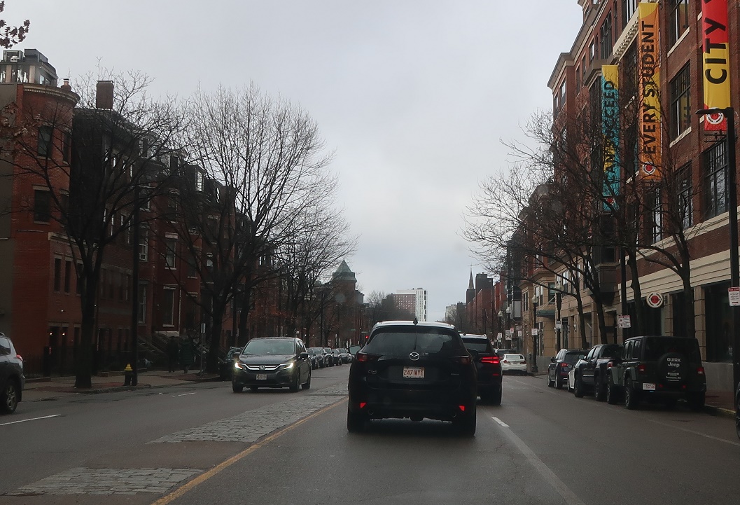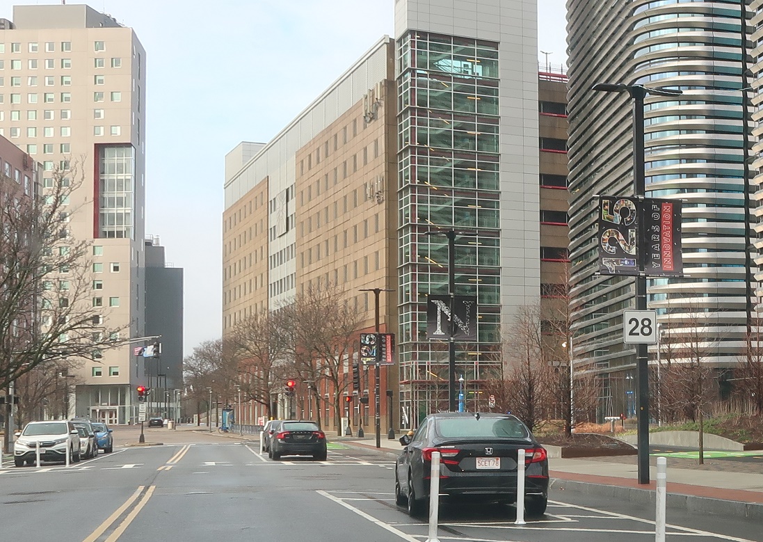 Reassurance shield a few blocks later as we pass by the Northeastern University campus.