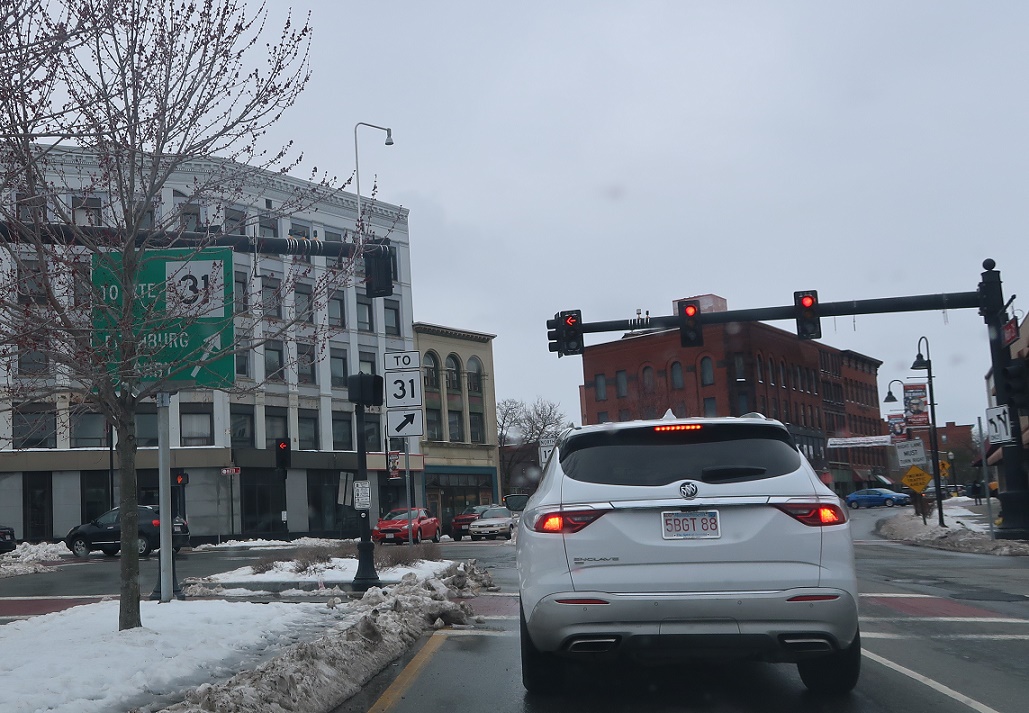 As we enter downtown Fitchburg, keep right to stay on Route 2A.