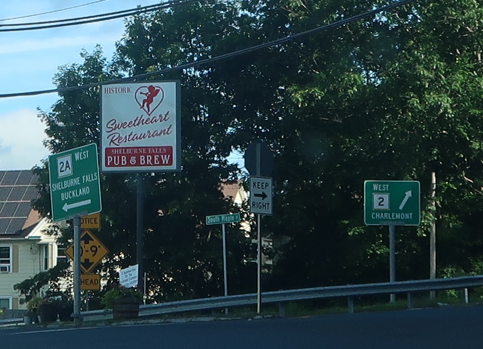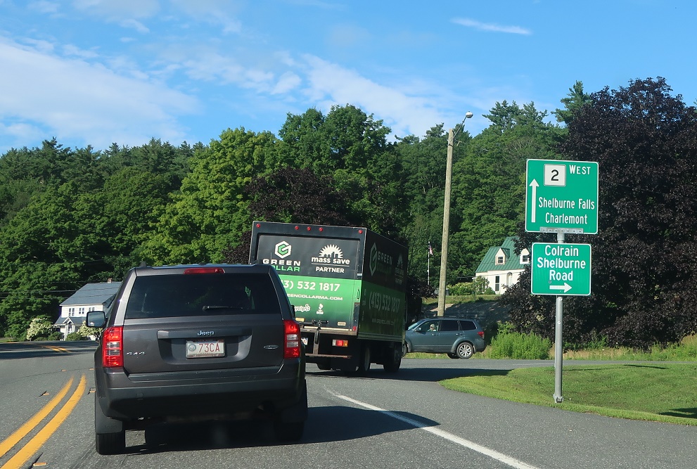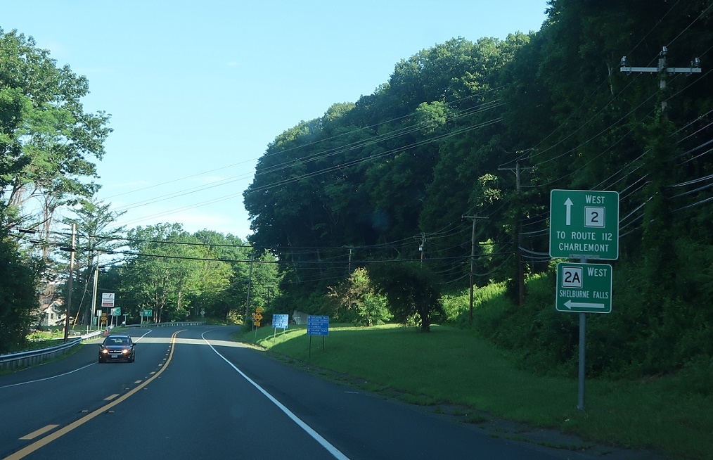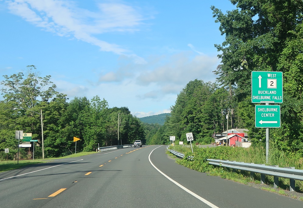 As we come into Shelburne Falls, Route 2A will split off one last time to act as a business loop for Shelburne Falls. Stay on Route 2 west for Route 112.